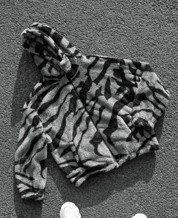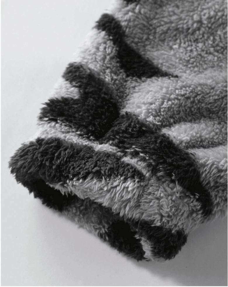 Moderne et cosy, cette polaire grise avec motif noir offre une touche d'originalité tout en restant chaude et confortable.